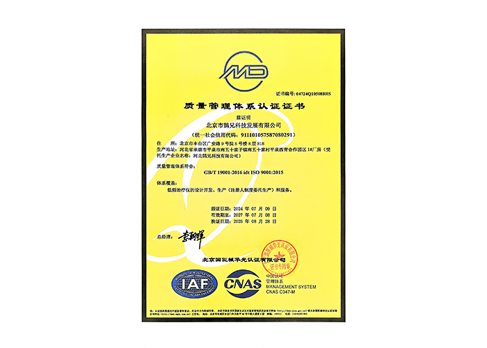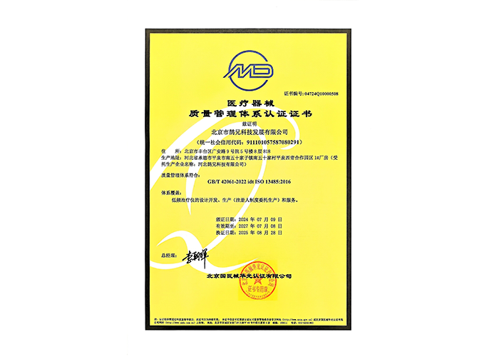 于2024年07月09日获得医疗器械质量管理体系认证证书