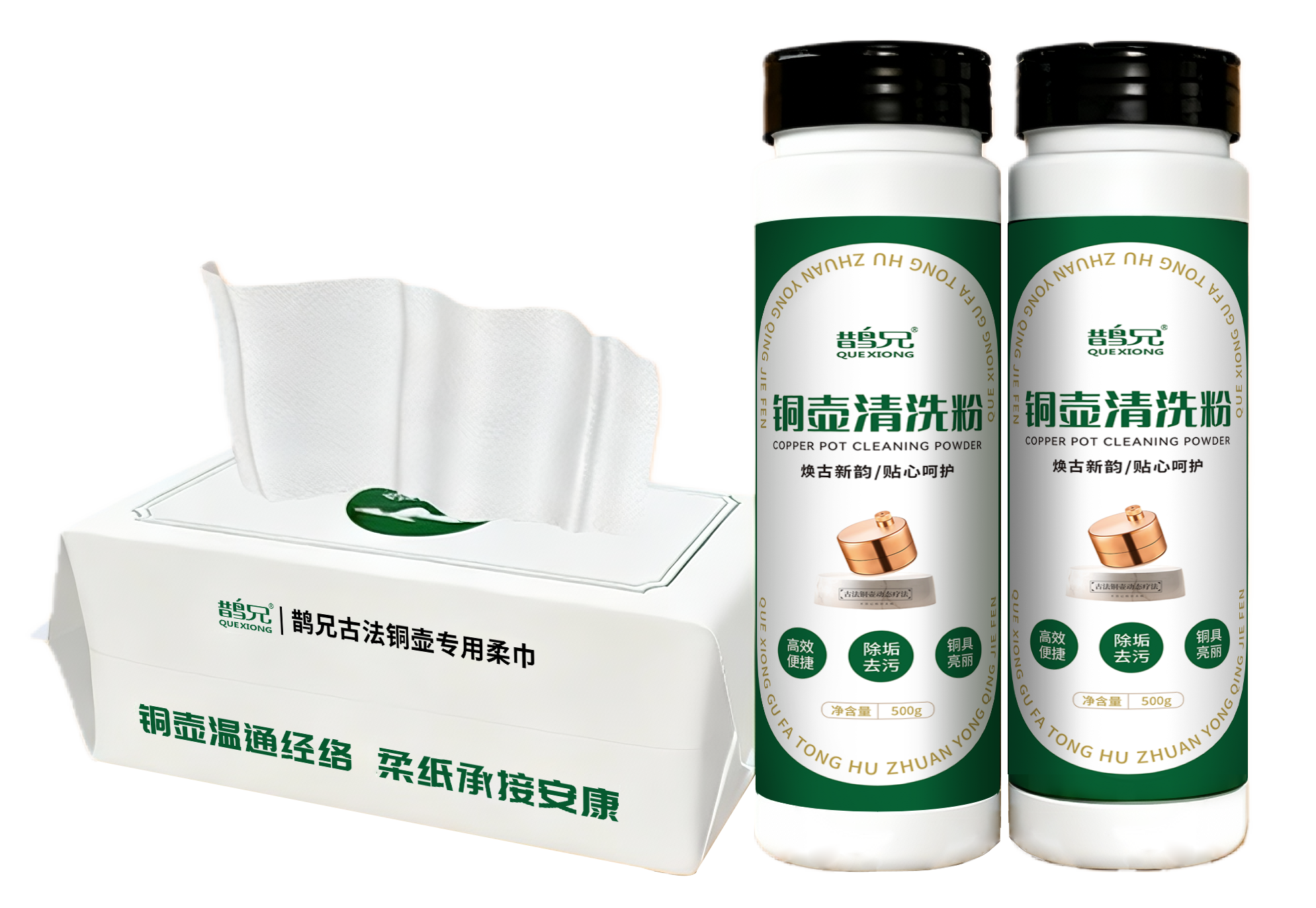 为了让这份温润养护不打折扣,鹊兄特意搭配两位使用+清洁“好搭档”:铜壶专用清洗粉+专用柔巾!轻松去除污渍与氧化痕迹,温和护壶不损伤材质,让你始终享受洁净顺滑的使用感、把铜壶养得光亮如新~